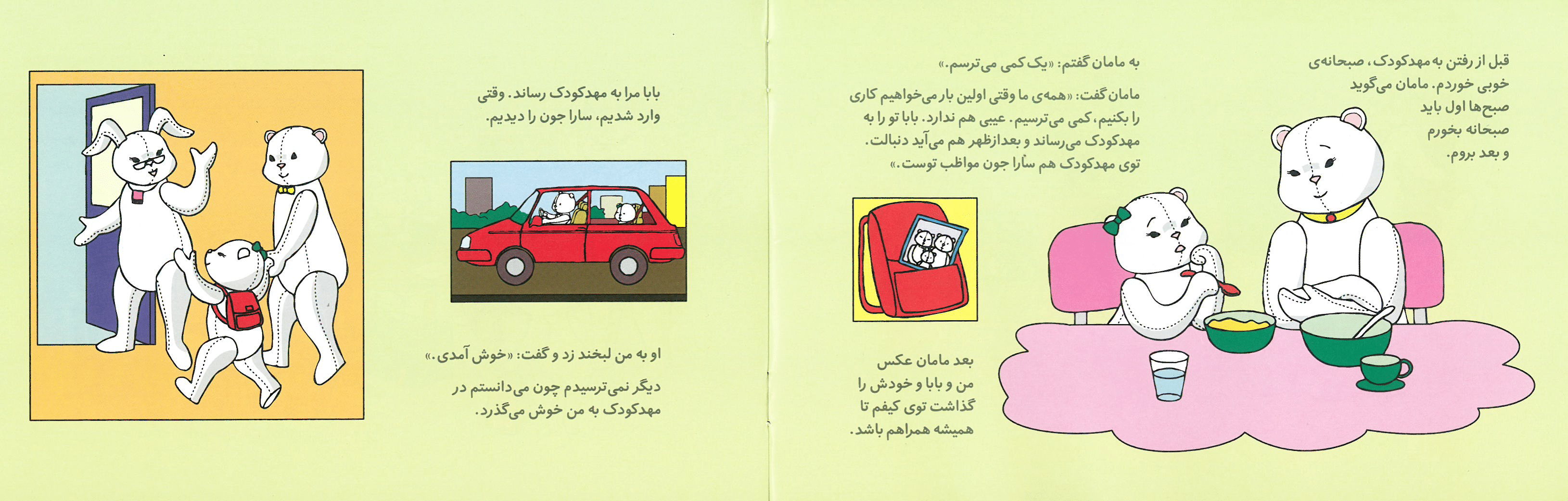 کمکم ترسش کم میشود و حالا آنقدر مهدکودک را دوست دارد که منتظر است هرچه زودتر فردا شود تا دوباره به مهدکودک برود.