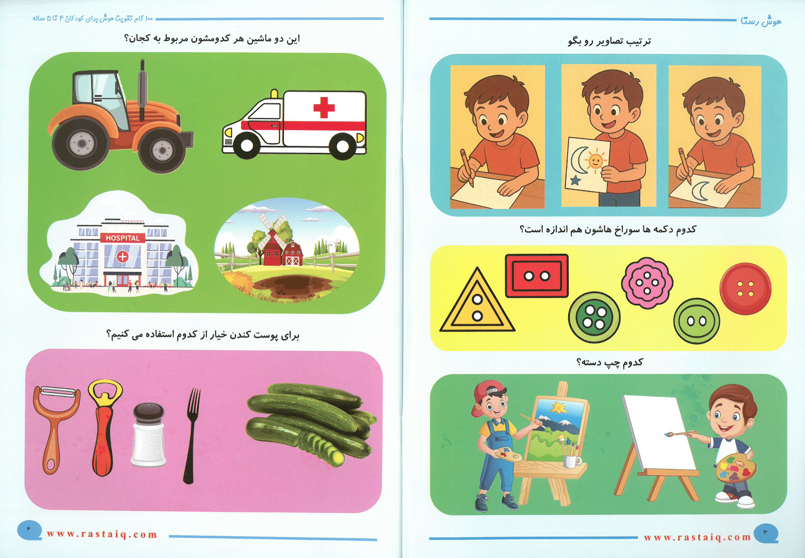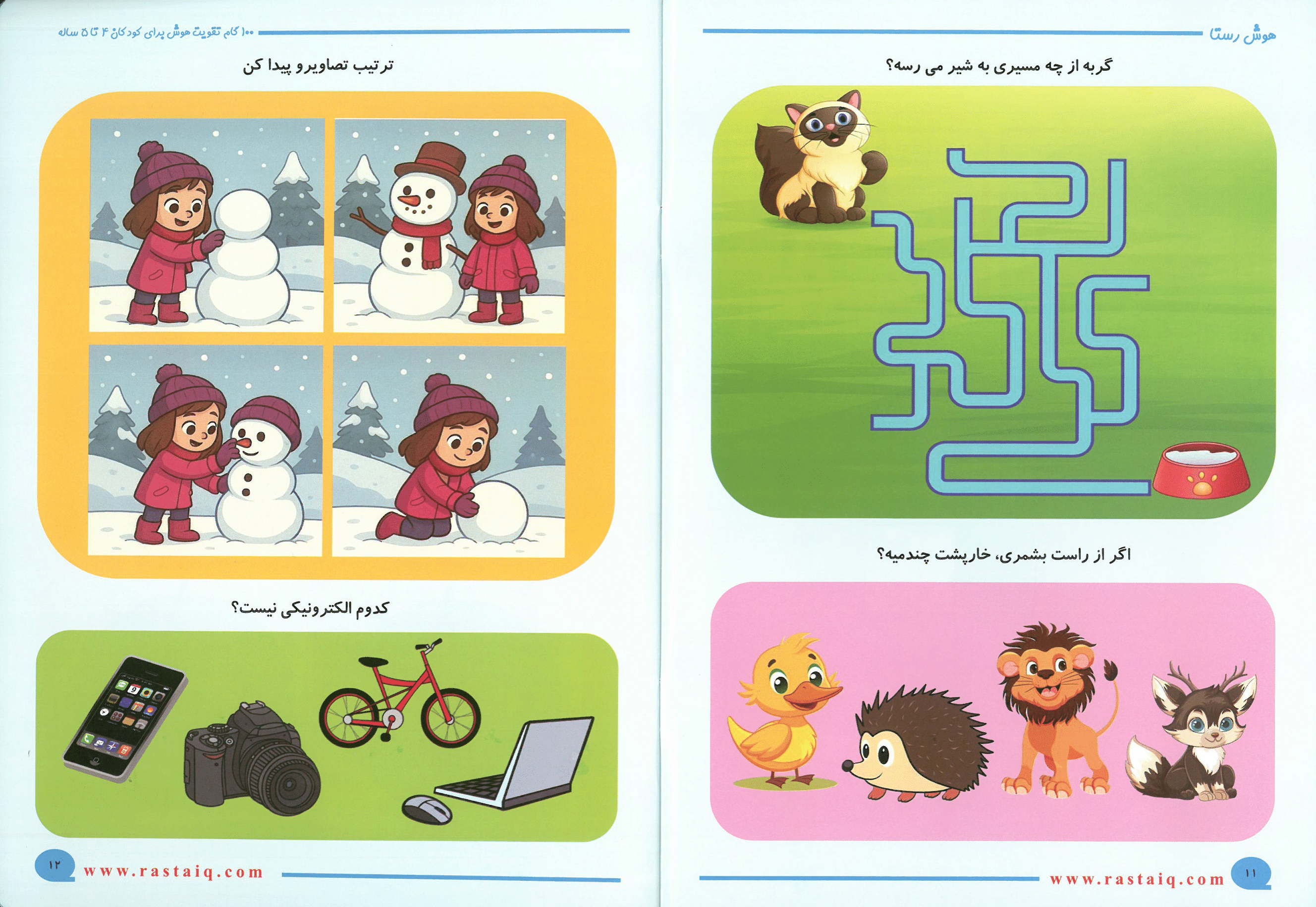 هر صفحه یک تست هوش کوتاه و جذاب است که مهارتهای ذهنی کودک را فعال و تقویت میکند.