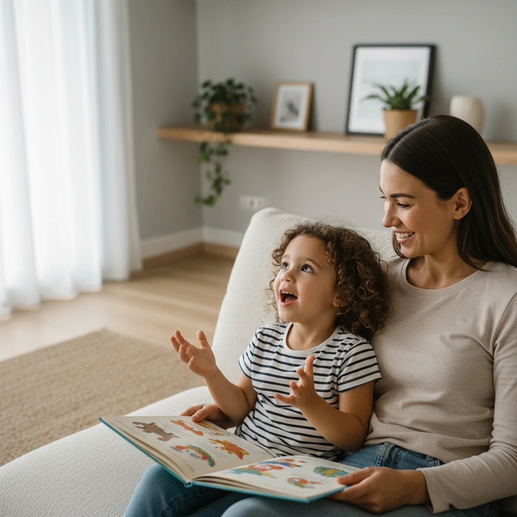 در هنگام خواندن، میتوان جمله کودک را کمی گسترش داد. اگر کودک گفت «توپ افتاد»، والد میتواند بگوید «توپ قرمز افتاد زمین». این کار بدون اجبار، مهارت جملهسازی را تقویت میکند.
